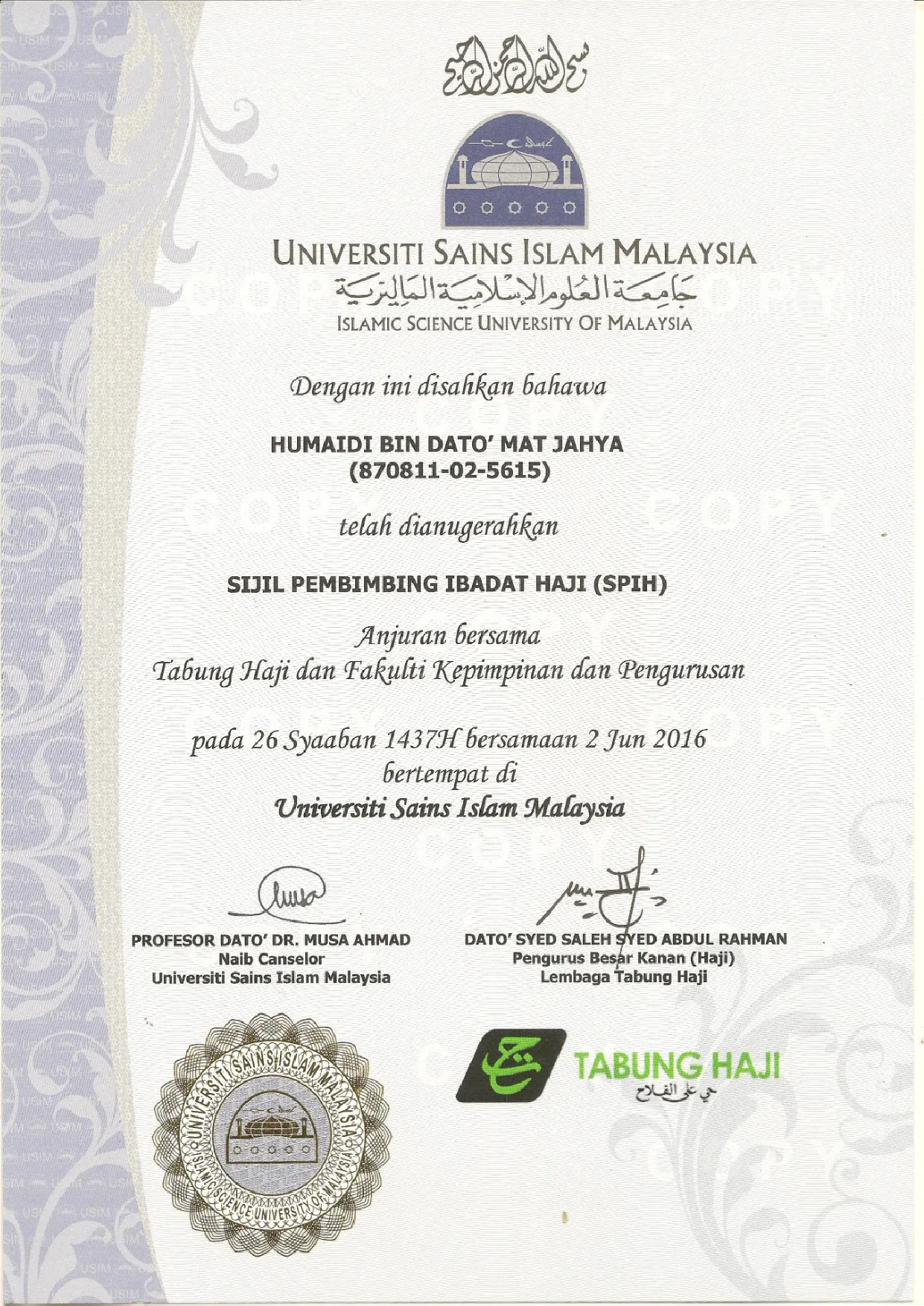 Obtained official Hajj Organizer license from Tabung Haji; recognized to manage Malaysian Hajj pilgrims.